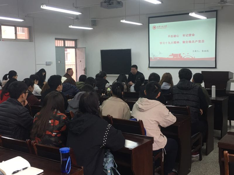 11月17日,西安工程大学副校长朱永民在临潼校区电子信息楼419为银河6163线路检测综合党支部和学生第二党支部讲授了题为《不忘初心、牢记使命,学习十九大精神,做合格共产党员》十九大精神专题学习的党课,两个支部共计30余名党员聆听了本次党课,本次活动由电信学院党委书记杨恩科主持。