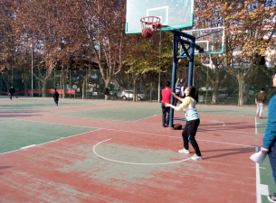 天气虽冷,但参赛选手们的心是暖的,看到男子组球场上帅气的身姿,我们女子组的成员也不甘示弱,就算是定点投篮,也要展现飒爽的英姿,谁说女子不如男,我们就可以。