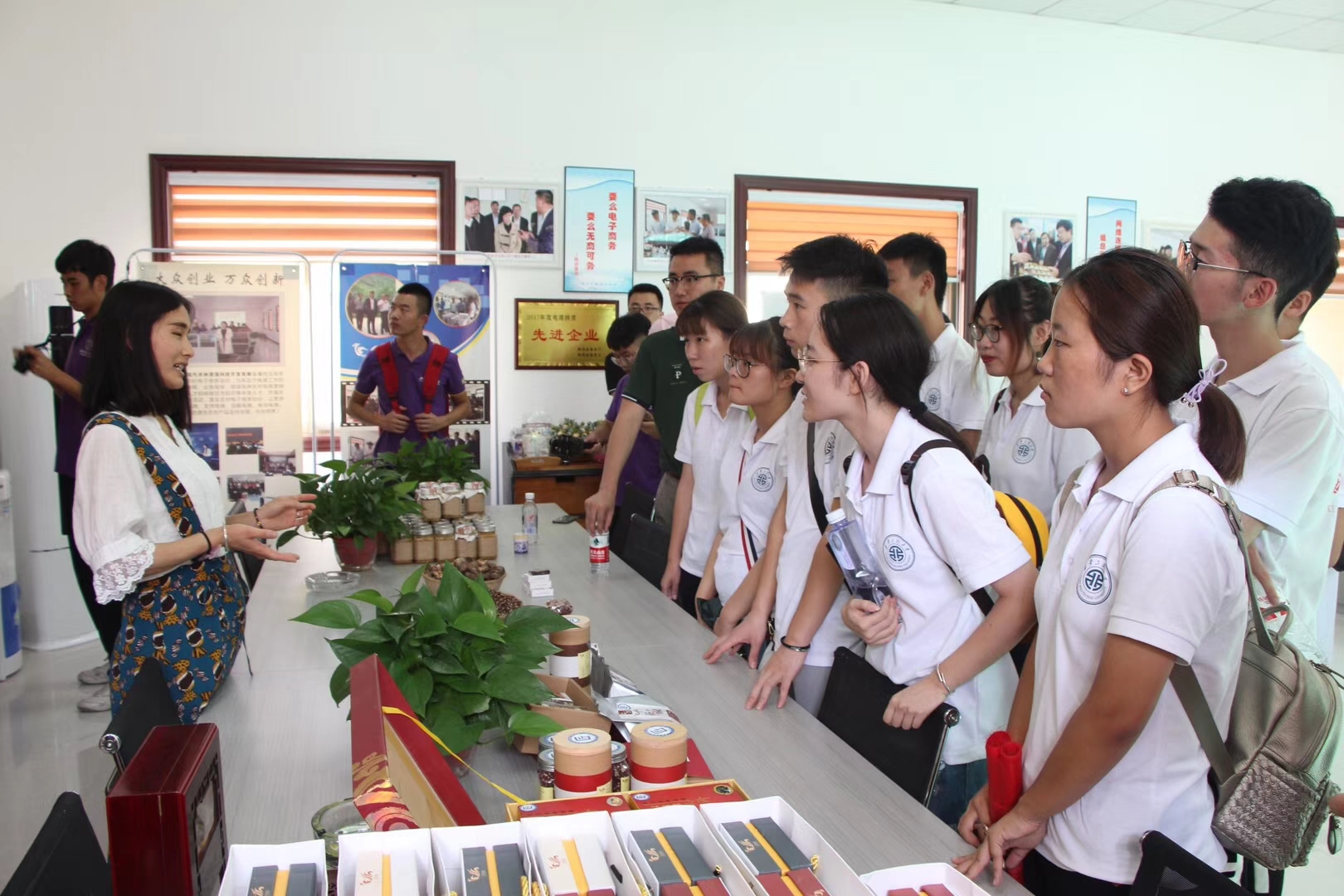 工作人员带领大家参观了当地特产“秦岭三宝”的加工车间,并简单介绍了公司近年来通过开设工作岗位、收购农产品带动周边地区的经济发展。同时指出目前的不足在于线上销售量不大,很多农户还认识不到电商带来的利益。