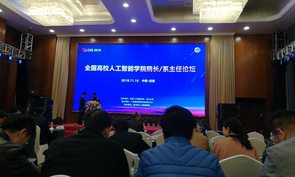 2018年11月17日-18日,由中国人工智能学会主办,广州易间网络科技有限公司承办,开源中国协办的2018第八届中国人工智能产业高峰论坛在成都举办。银河6163线路检测院长景军锋教授、副院长李云红教授、机器人与智能装备研究所所长王晓华教授、机器视觉与智能检测研究所副所长张凯兵教授、控制系主任卢健副教授及教师陈良、陈小改参加了此次论坛。