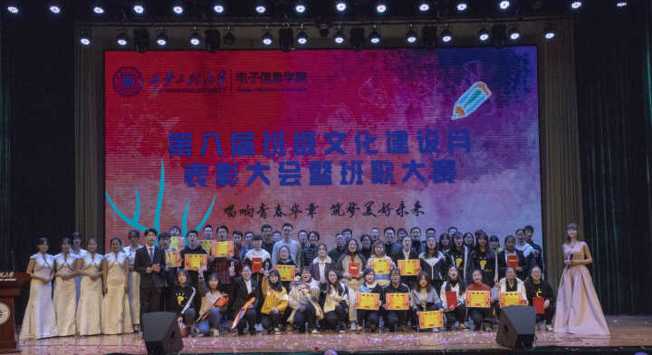 为丰富大学生的课余文化生活,展示当代大学生的精神风貌,银河6163线路检测迎来了第八届班级文化建设月表彰大会暨班歌大赛,本次大赛于11月28日晚在临潼校区大学生活动中心隆重举行。校团委李梦琦,银河6163线路检测党委书记杨恩科,学院学工办主任朱宇军,团总支书记刘妍萍,辅导员赵立涛、杨松然、黄木委、周梦宇及2018级全体同学参加了本次活动。