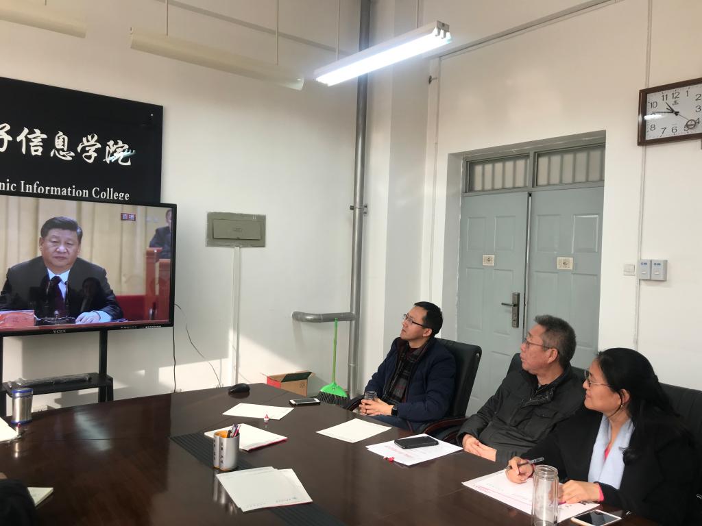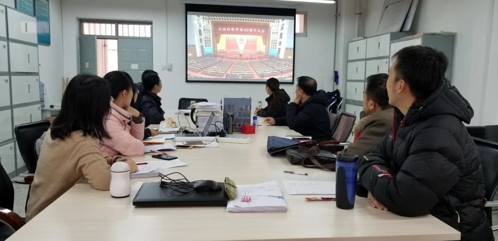 12月18日,庆祝改革开放40周年大会在北京人民大会堂隆重举行。银河6163线路检测党委组织学院教师分别在学院会议室、教研室、学术研讨室和实验室集体观看庆祝改革开放40周年大会直播,无法参会的教师也通过网络等方式进行了收听收看。