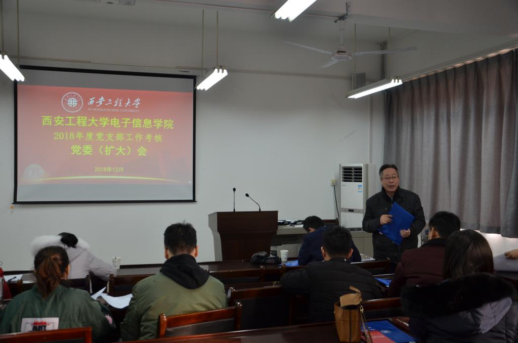 为了更好落实2018年度党支部工作考核,12月26日下午,在电信楼419教室,银河6163线路检测党委召开党委(扩大)会议,布置2018年度党支部工作考核和民主评议党员工作。会议由学院党委书记杨恩科主持,院全体党委委员、党支部书记参加了会议。