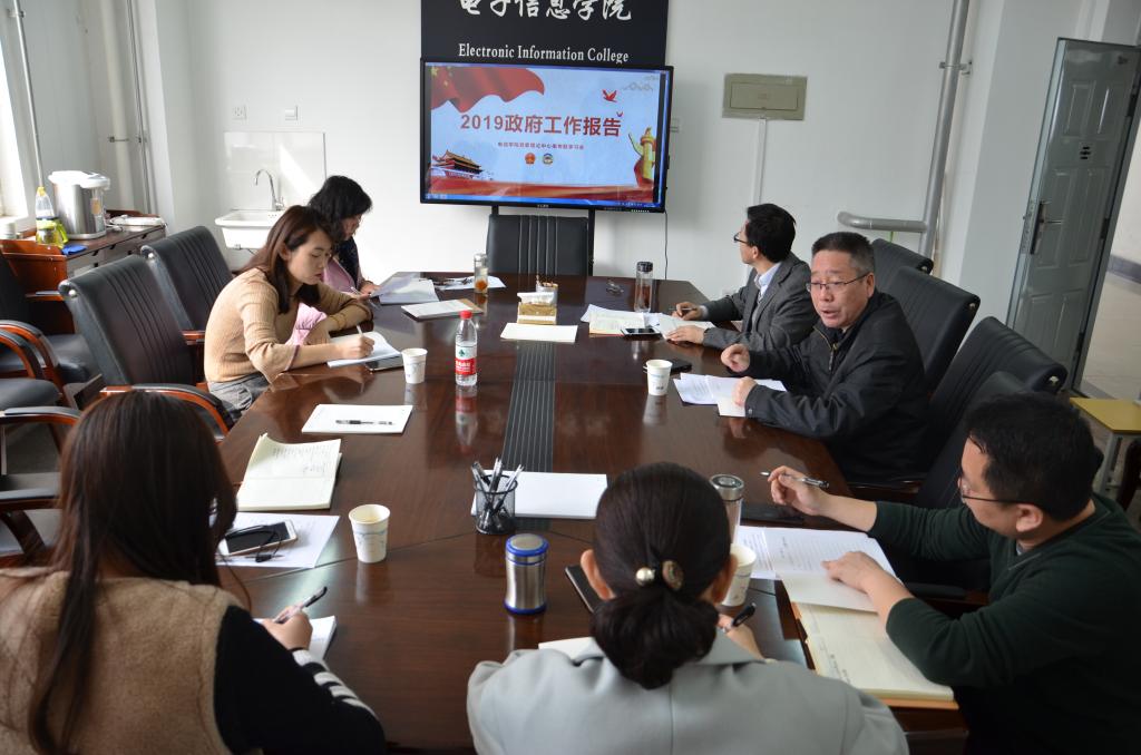 银河6163线路检测党委紧跟全国“两会”步伐,于3月13日上午,组织学院党委理论中心组全体成员在414会议室集体学习2019年《政府工作报告》,会议由学院党委书记杨恩科主持。