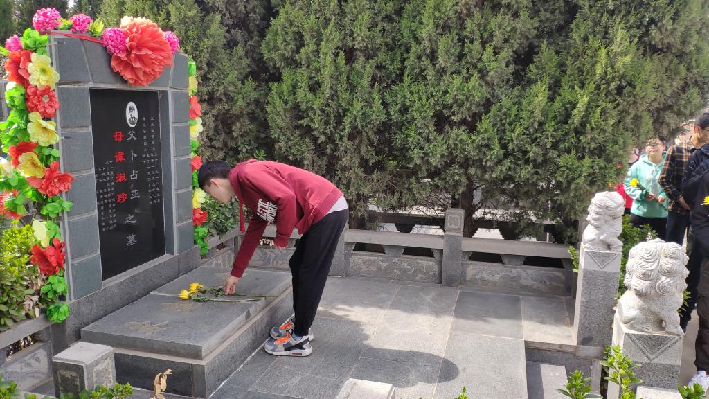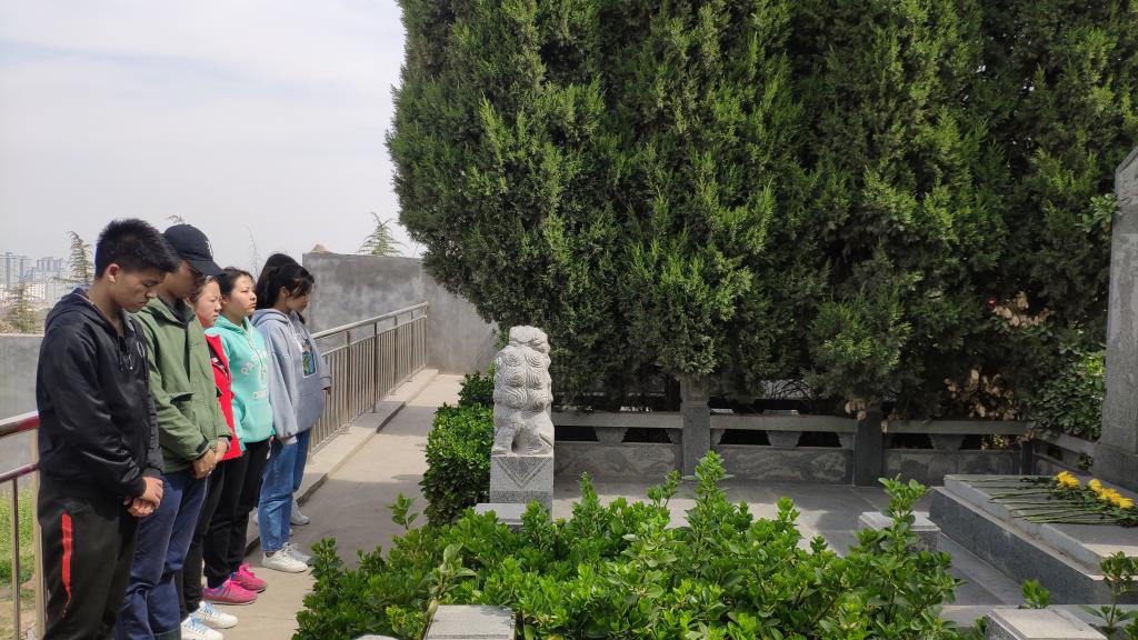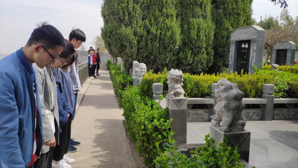 青山有幸埋忠骨,骊山陵园内古朴幽静,同学们肃立于英烈墓碑前,举行了简单却严肃的献花仪式,并进行默哀,寄托了对先烈们无限的敬意。