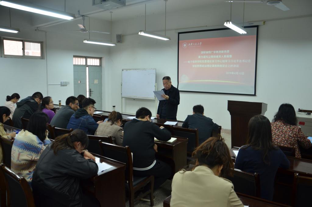 学习会上,杨恩科介绍了本次座谈会的重大意义并带领大家认真学习了习近平总书记在学校思想政治理论课教师座谈会上的重要讲话内容。他指出:习近平总书记在会上强调,要用好课堂教学这个主渠道,各类课程都要与思想政治理论课同向同行,形成协同效应。这次座谈会,充分体现了党中央、习近平总书记对教育工作的高度重视,体现了我们党对教育工作和思想政治工作的高度重视,把建好学校思政课放在了一个突出的位置,推动思政课教育迈上新台阶。从学院层面也要将思想政治教育工作贯穿于教育、管理和服务的各个环节,始终以立德树人为核心,发挥好教师的作用,抓住课堂教学的主渠道作用,积极推进“课程思政”建设,努力提升课程育人和实践育人质量。