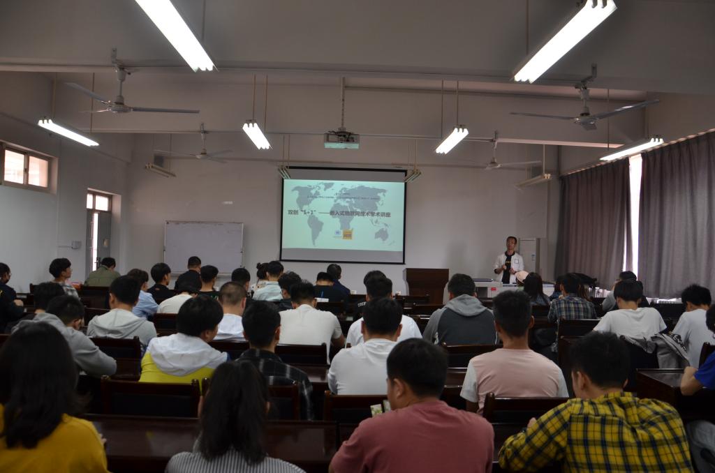 最后,控制系教师周静雷结合讲座内容给同学们介绍了嵌入式技术的发展前景,并鼓励同学们不仅要努力学好专业课,更要将专业知识融入实际应用之中,通过参加创新创业项目、各类专业竞赛来锻炼自己的学习、动手、协作、创新这四个方面的能力。
