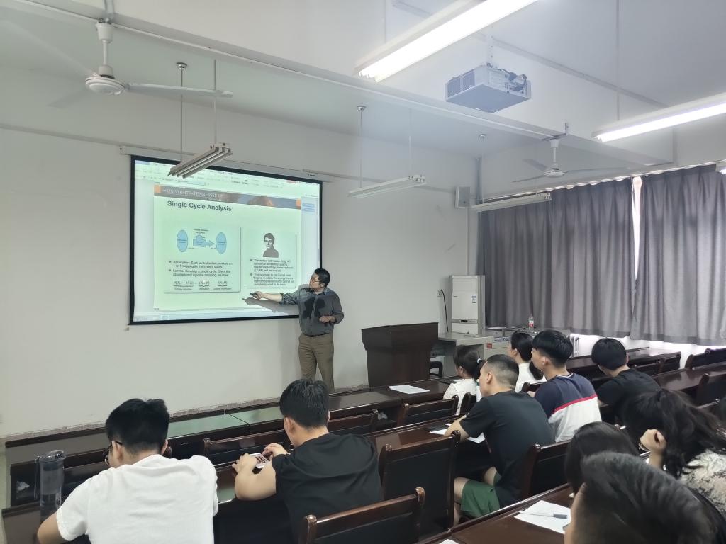 在交流提问环节,李虎生教授结合自己的科研经历,对学生提出的5G通信技术的问题进行了耐心详细的解答,现场气氛热烈。