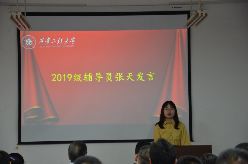 随后,2019级新生辅导员张天就近期的事项向新生及新生家长做了详细的说明,并表示一定会尽己所能,好好引导和培养新生,使其成才而立。