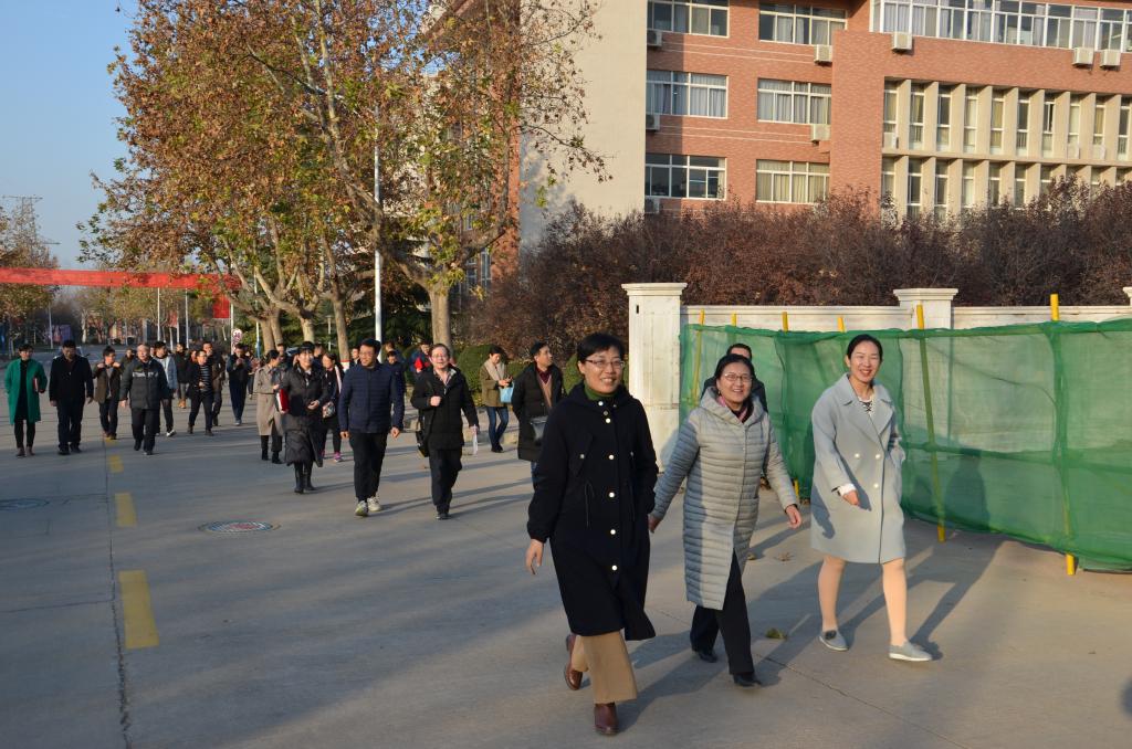 活动期间,秋高气爽,阳光明媚,教师们精神抖擞,健步如飞,迈着有力的步伐围绕校园规定的路线进发。