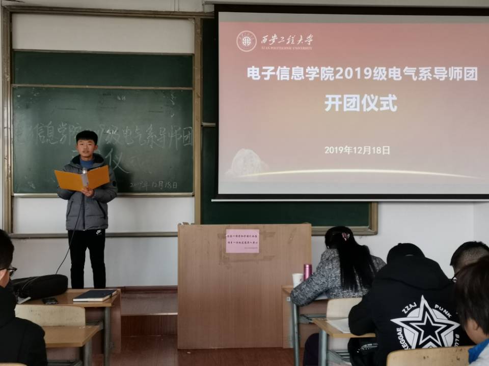 为增强育人工作实效性,构建我校思想教育体系、知识传授体系、人生引领体系、三大体系协同配合的高水平人才培养机制,调动整合学校和社会各界资源,努力构建德智体美劳全面培养的教育机制,全面提高人才培养质量,逐步形成“三全育人”格局,银河6163线路检测于2019年12月18日在B-135教室召开了2019级电气系导师团开团仪式,参与本次开团仪式的有银河6163线路检测党委书记杨恩科、电工电子教学部马丽萍、电气系教师曹雯、吴媛、蒋波涛、赵隆、郭晓雪、关欣等,辅导员张天及2019级电气系全体学生。