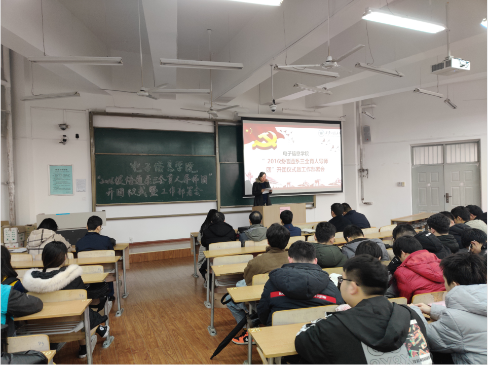 为扎实推进学院“三全育人导师团”工作,按照学院安排部署,12月25日下午,2016级信通系三全育人导师团召开了开团仪式暨工作部署会。导师团名誉团长朱永民副校长等导师团9名导师、2016级信通系全体学生200余人参加了大会。本次会议由导师团执行团长李云红主持召开。