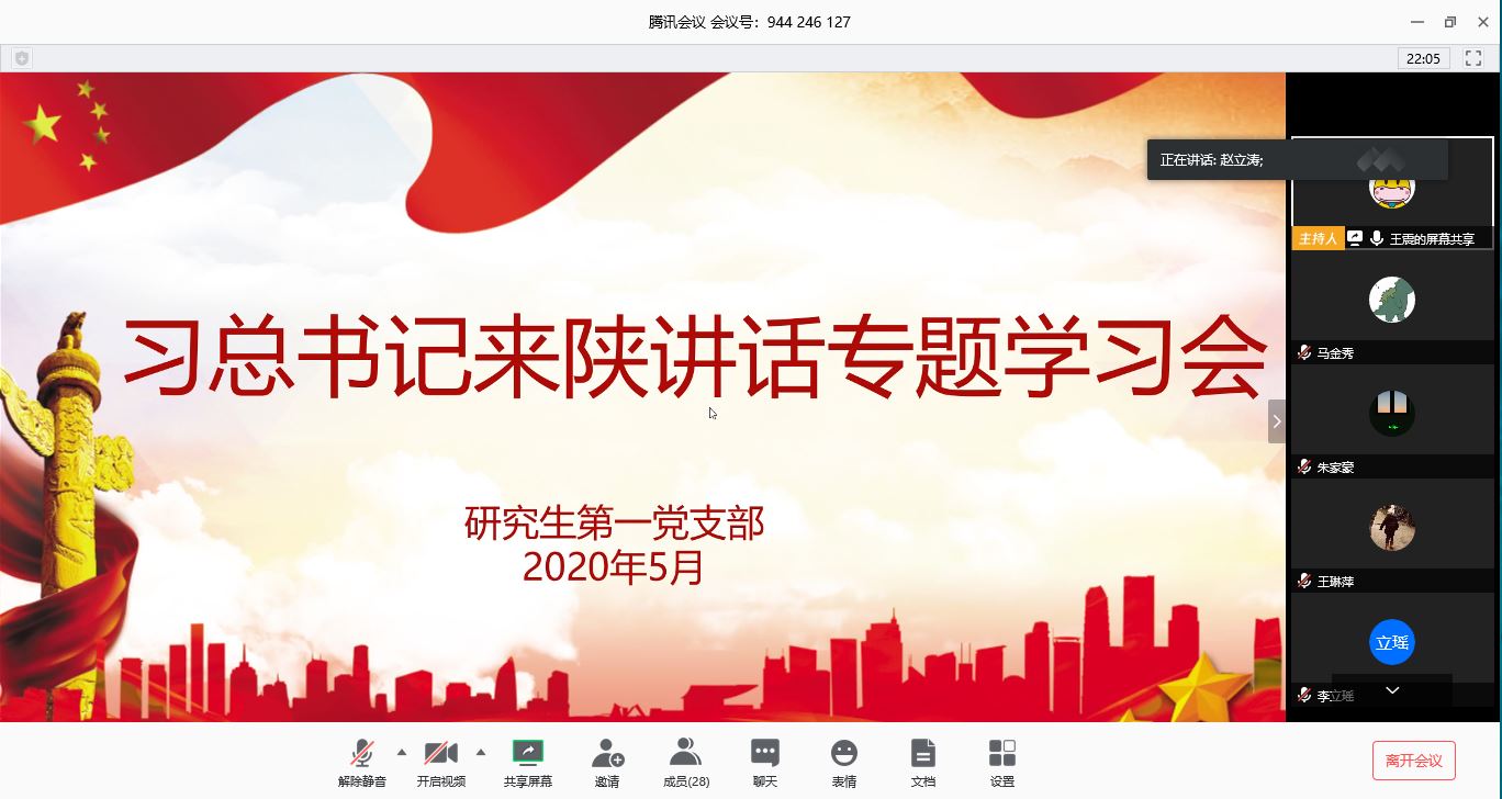 为深入学习贯彻习近平总书记来陕考察重要讲话精神,银河6163线路检测研究生第一党支部于2020年5月24日开展了“习近平总书记来陕考察重要讲话精神”专题学习会,会议由支部书记赵立涛老师主持,支部全体党员参加此次会议。