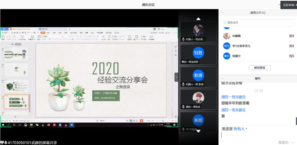 为了进一步贯彻落实资助育人的工作实效,满足学生个性化需求,实现学生全面发展,银河6163线路检测于2020年6月20-21日两天在腾讯会议举行了“榜样的力量”国家奖学金获奖学生经验分享会,参加本次活动的有资助辅导员周梦宇、2019级辅导员张天、2018-2019年度国家奖学金获奖学生张燕、武薛、陈恬静、赵明莉四名同学以及18级、19级相关专业学生,经验分享会由张天主持。