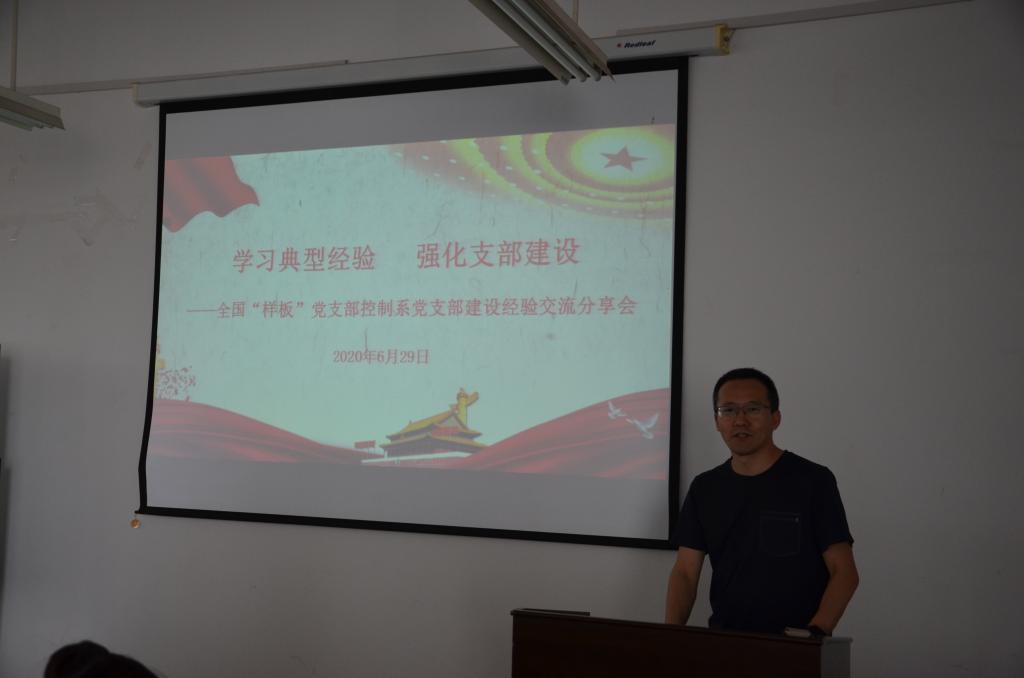 会议最后,学院执行院长、院党委副书记、控制系党支部书记景军锋教授为全体参会人员做了全国样板党支部建设工作经验交流分享。景军锋从支部基本情况、支部对标“七个有力”建设基本情况、支部培育建设典型做法、支部平台建设发挥作用、支部培育建设成果及存在问题和努力方向六各方面作了细致的分享交流,最后还为大家展示了《党建引领科研发展 科研提升育人实效》支部建设微视频。通过交流,大家纷纷表示今后会借鉴控制系党支部的成功做法和经验,查找不足,补足短板,全面提升支部党建工作水平。(撰稿人:朱宇军 审核人:杨恩科)