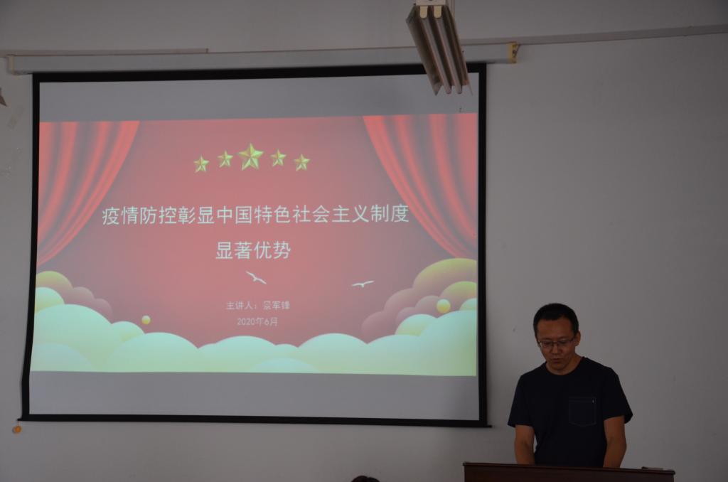 为迎接建党99周年,全面提升党员干部政治思想和政治觉悟,增强责任感和使命感,6月29日下午4点,银河6163线路检测党委开展迎七一、讲党课——“党课开讲啦”活动的第一讲。学院执行院长、院党委副书记景军锋主讲了题为“疫情防控充分彰显中国特色社会主义制度优势”的专题党课。学院领导班子成员、全体党委委员、支部书记参加了会议。