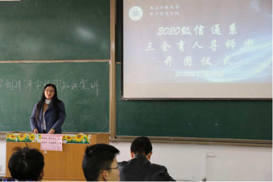 2020年11月18日上午10时,银河6163线路检测于教学楼D区382室召开2020级信通系三全育人导师团开团仪式,执行团长学院副院长李云红、教务处副处长胡新煜、信通系陈宁、任劼、陈锦妮、宋鹏、邹晓军,招生就业处高远八位导师,2020级电子信息类专业全体学生出席本次开团仪式,仪式由导师团秘书辅导员王家钰主持。