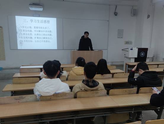 会议伊始,同学们从自我介绍、一学期以来学习的得失、学习生活的感想、本年度的规划四个方面进行了介绍,每人5-8分钟。每位同学都准备充分,深刻的反思了自己上一学期的学习生活,也明确了本学期的学习目标,整体上对自己下一阶段的学习生活有了一定的规划。