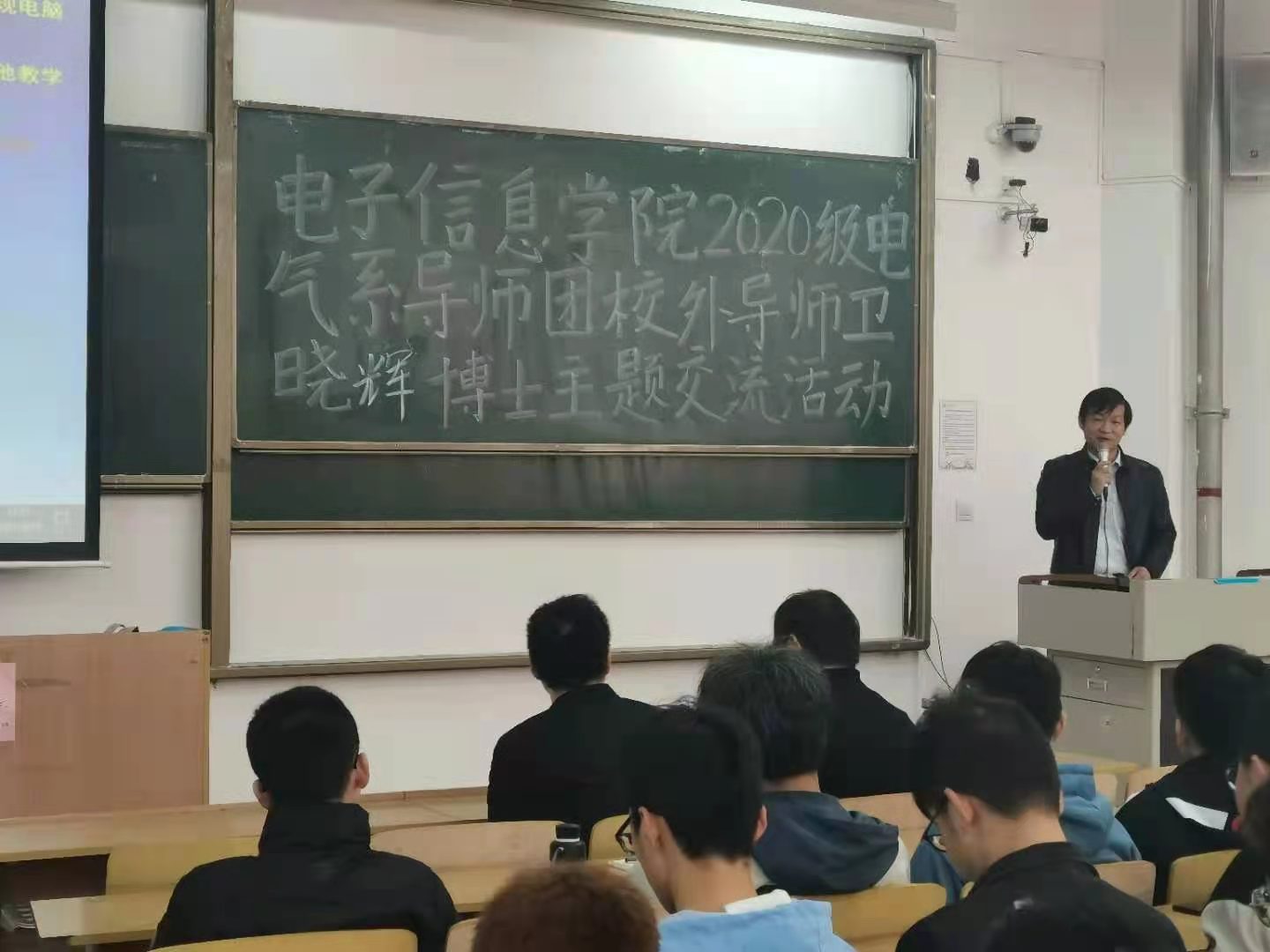 2021年3月14日上午,银河6163线路检测2020级电气系“三全育人”导师团校外导师卫晓辉博士为电气专业2020级140余名学生做主题交流报告,执行团长邵文权、导师程远老师共同参加。