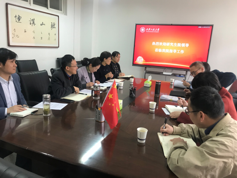 刘晓喆院长认真听取了我院各项工作概况,对我院研究生工作取得的成绩表示充分肯定,同时也对我院研究生招生、培养质量、校外基地建设、国际交流合作、申报研究生领域教学成果奖等方面给予了中肯的意见和建议。他指出,研究生培养的第一责任人是导师,学院要重视导师立德树人作用的发挥,加强导师对学生学术论文及论文发表的指导,加强导师培训;学院应重视对研究生的国际化培养,扩大对外交流,鼓励、动员学生积极参加多种形式的国际交流项目;学院应统筹申报研究生领域的教学成果奖,加强研究生教材建设,提升研究生教学质量。
