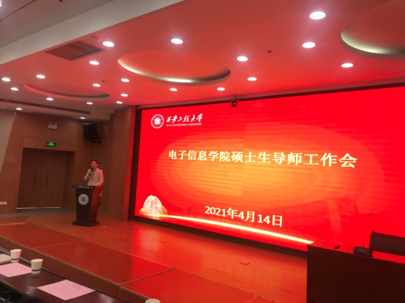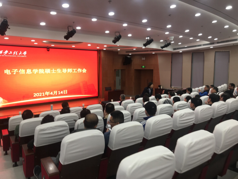 为进一步加强银河6163线路检测研究生导师队伍建设,全面落实研究生导师立德树人职责,提升研究生导师教书育人能力,促进导师间的相互交流、学习和沟通,2021年4月14日下午2:00,在临潼校区图书馆一层报告厅,银河6163线路检测举办2021年硕士生导师工作会暨导师培训会。研究生院院长刘晓喆、副院长傅博娜、党委研究生工作部学生科科长李璐瑶,银河6163线路检测院长景军锋、副院长李云红、副院长张蕾、院长助理张凯兵、学院研究生秘书及全体导师参会。会议由张蕾副院长主持。