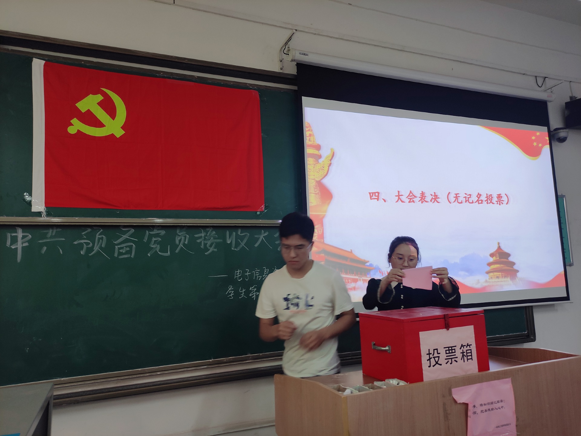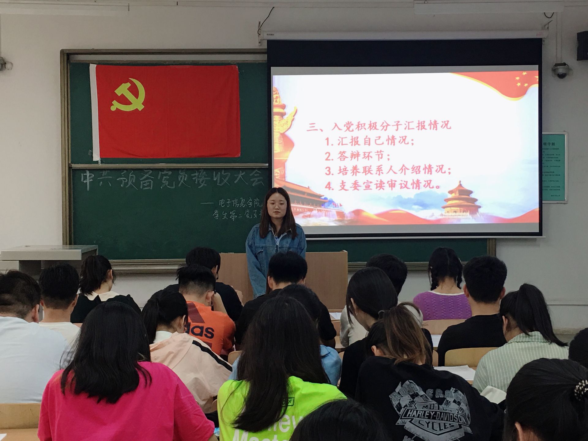 为加强学校基层党组织建设,做好发展党员工作,2021年5月25日下午18:00,银河6163线路检测学生第二党支部在临潼校区A-112教室召开第60期预备党员接收大会,顺利完成了发展党员工作。本次大会由党支部书记刘风萍同志主持,第60期发展对象以及支部全体党员按时参加。