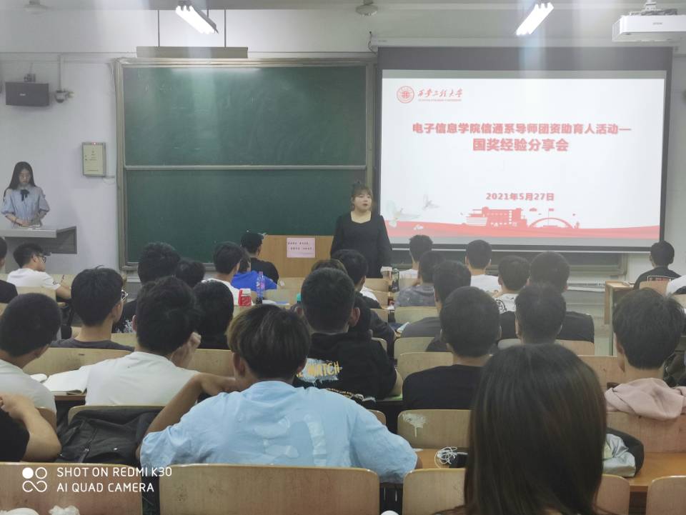 为了进一步深化“三全育人”导师团育人功效,增强校园学术氛围,激励同学们奋发图强,树立高远目标。银河6163线路检测信通系导师团于2021年5月27日开展了信通系导师团资助育人活动-国奖经验分享会。本次分享会的主讲人为2018级国奖获得者魏雨昕。2020级辅导员王家钰、18级、19级信通系部分学生、20级信通全体学生参加了本次分享会。