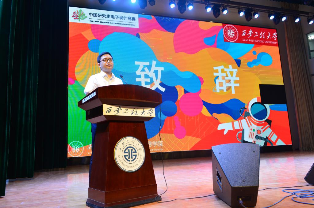 开幕式伊始,由党委研究生工作部部长臧国强致辞,他首先对各位评委的出席以及组织单位的精心准备表示感谢,从研究生综合能力提升的培养方面强调了举办研究生电子设计竞赛的重要意义;从家国情怀、使命担当、时代责任等角度强调了研究生创新创业的内驱力的重要意义。最后,他殷切地鼓励所有参赛队伍积极准备,希望参赛队都能取得更好成绩。