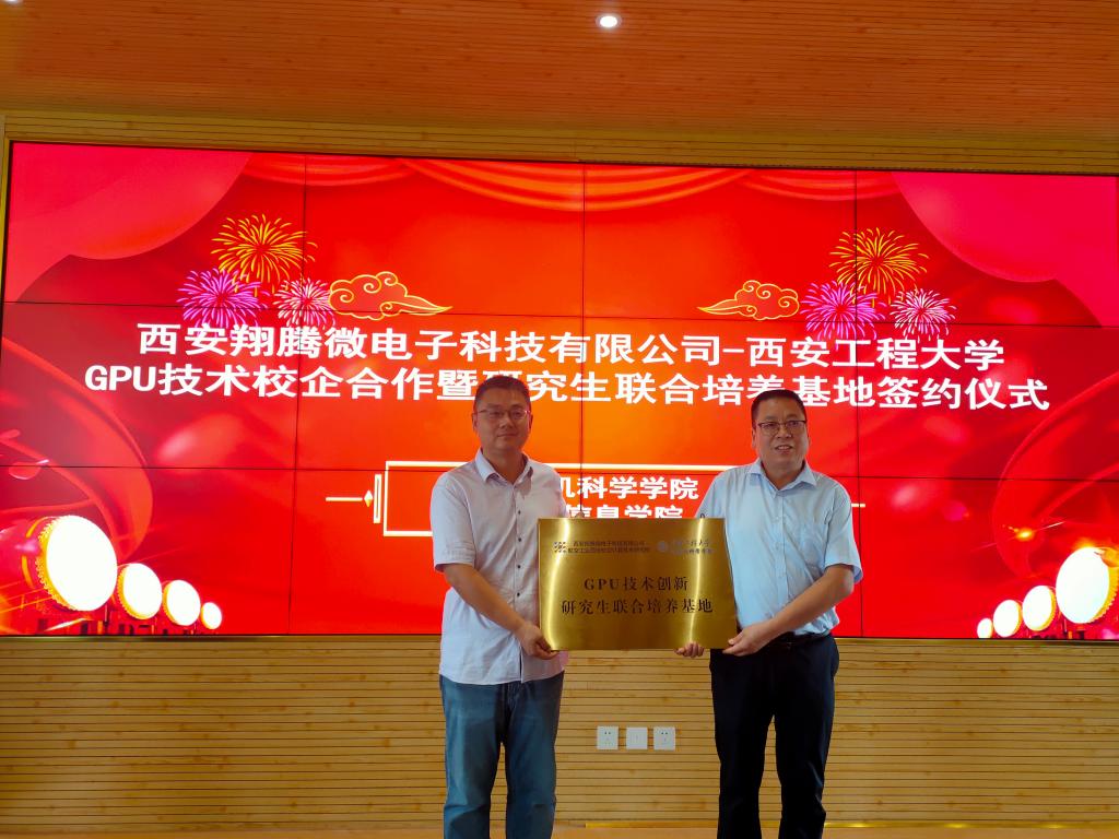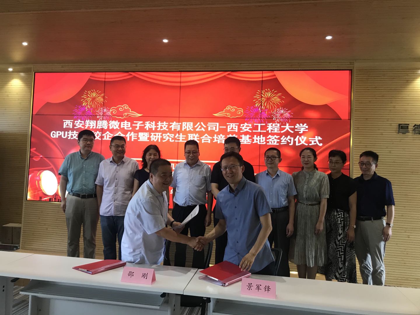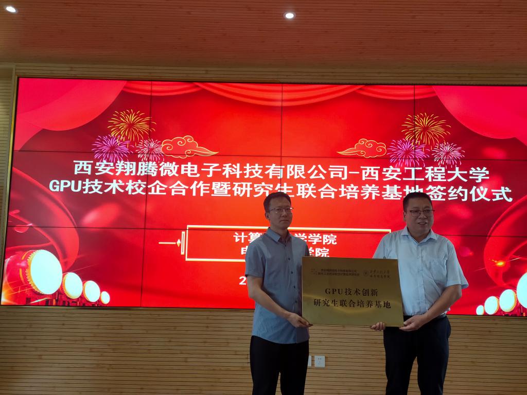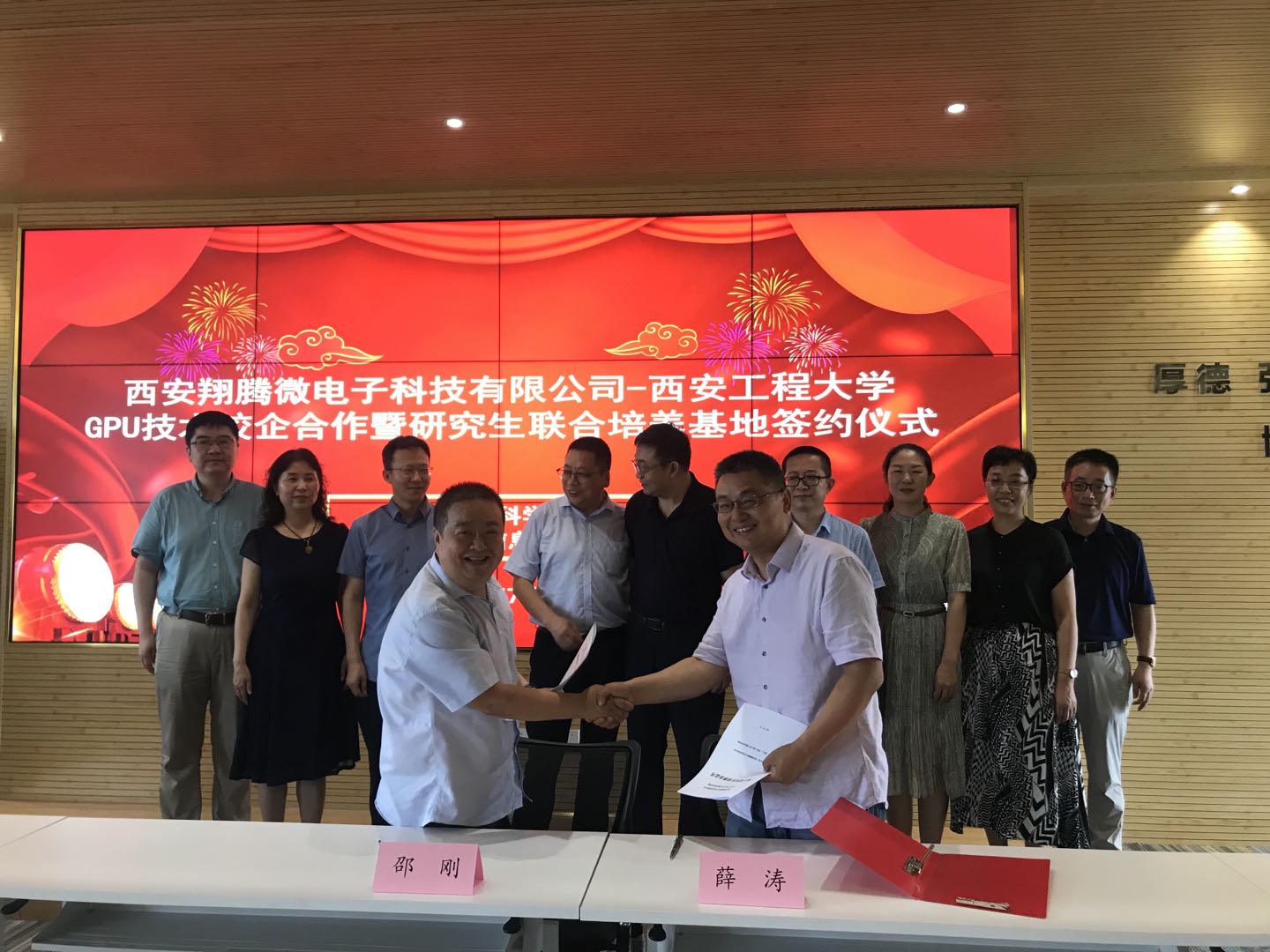 2021年7月15日上午,西安工程大学与西安翔腾微电子科技有限公司GPU技术校企合作暨研究生联合培养基地签约揭牌仪式在计算机学院614学术报告厅举行。西安工程大学副校长李鹏飞、西安翔腾微电子科技有限公司总经理田泽、副总经理邵刚、相关技术负责人、西安工程大学研究生院、科技处、校友会负责人、计算机学院、银河6163线路检测负责人等领导及师生代表80余人出席仪式。签约揭牌仪式由计算机学院薛涛院长主持。