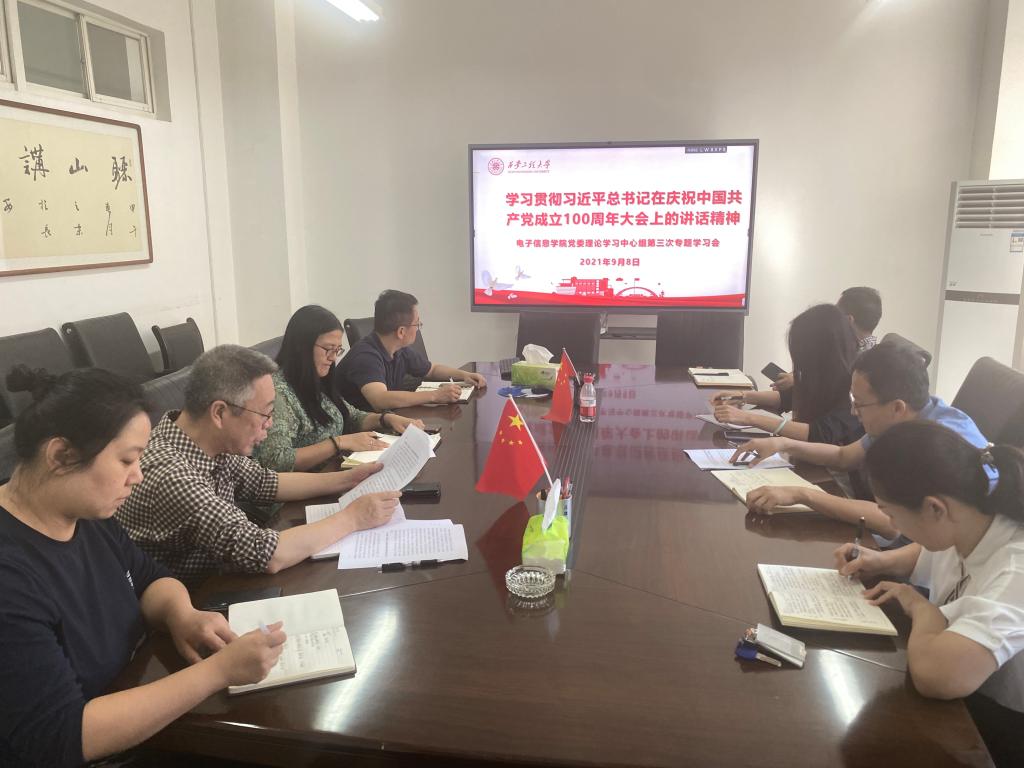 最后学院党委开展了习近平总书记在庆祝中国共产党成立100周年大会上的讲话精神第三次集中学习会,全体参会人员集体学习了《党委理论学习中心组学习材料》(党委宣传部编2021年7月)理论文章《新时代中国共产党人的政治宣言》和《弘扬伟大建党精神》,并进行了学习交流。