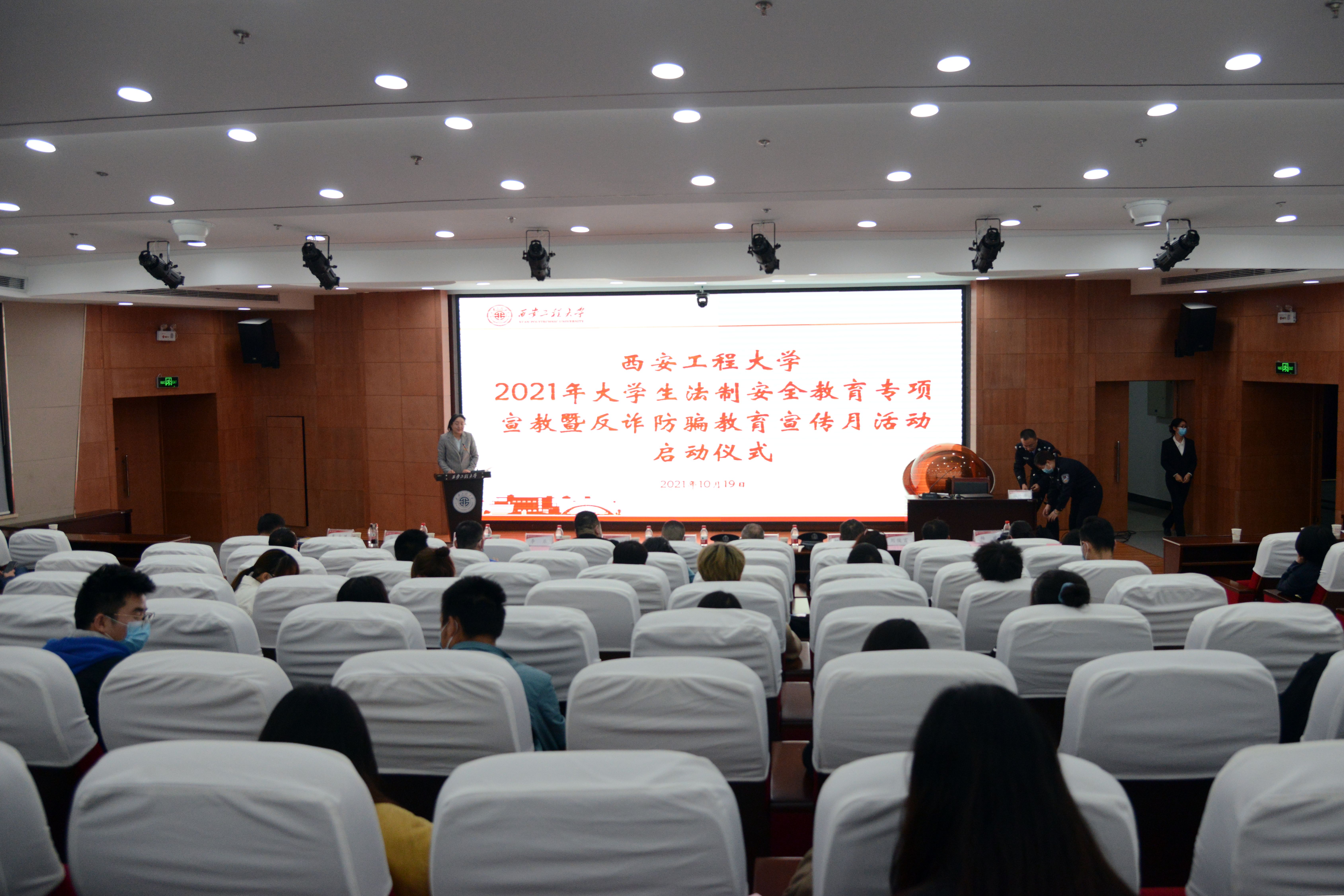 为坚决贯彻落实习近平总书记对打击治理电信网络诈骗犯罪工作作出的重要指示精神,进一步突出我校大学生法制安全教育的现实性,提升师生法制和安全意识,同时遏制涉及广大师生的电信网络诈骗案件的发生。2021年10月19日下午16时,我校与两校区属地公安部门协作,在临潼校区图书馆一层报告厅举办2021年大学生法制安全教育专项宣教暨反诈防骗教育宣传月活动启动仪式。参加此次启动仪式的有西安市公安局临潼分局斜口派出所和碑林分局金花路派出所有关负责同志、校党委副书记赵小峰;党委学生工作部、保卫处、校团委等各职能处室负责人,各学院党委副书记、辅导员及学生代表。会议由副校长朱永民主持。