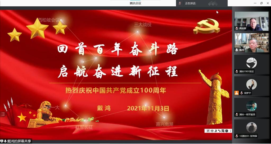 2021年11月3日下午,副校长戴鸿为银河6163线路检测师生党员讲授了《回首百年奋斗路,启航奋进新征程》 的专题党课。本次党课由学院党委书记杨恩科同志主持,学院党委理论学习中心组成员,各党支部书记,教工支部、人工智能专业本科生党支部部分师生党员共同聆听本次党课。