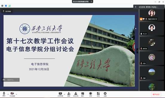 2021年12月28日下午,银河6163线路检测第十七次教育教学工作会第二次分组讨论会在线上召开。副校长戴鸿、校科技处处长朱耀麟、电信学院党政领导、各系部正副主任、专业负责人、实验室负责人、教学秘书、教务员及教师代表参加了此次讨论会。讨论会由电信学院院长景军锋主持。