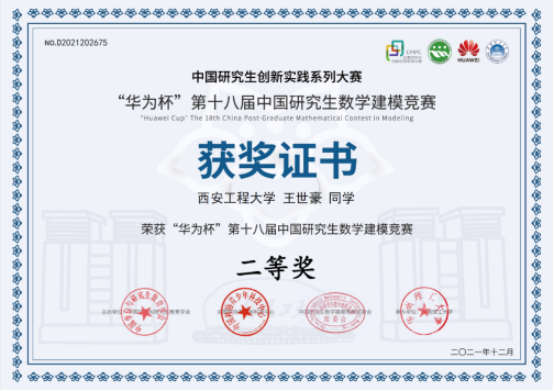 “华为杯”中国研究生数学建模竞赛是由中国学位与研究生教育学会、中国科协青少年科技中心主办,属于中国研究生创新实践系列大赛之一。该赛事为广大研究生探究实际问题、开展学术交流、培养团队意识搭建了有效平台,能够有效培养研究生创新意识,提升研究生创新实践能力。本届竞赛经主办方组委会按竞赛章程评阅,评选出一等奖206队(获奖比例为1.164%),二等奖2175队,(获奖比例为12.293%),三等奖3519队(获奖比例为19.890%)。总获奖队数5900队,总获奖比例33.348%。此次比赛,我校研究生荣获二等奖一项、三等奖4项、36支队伍获成功参与奖。(撰稿:张宏伟,审核:张蕾)