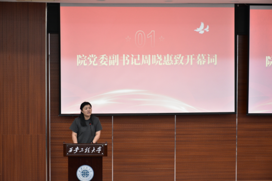 大会第一项,党委副书记周晓惠进行致辞。她向同学们提出三点希望:一是希望同学们崇德乐道,用信念之基砥砺家国志向,以坚定的理想信念在追求“小我”中找准“大我”;二是希望同学们笃行乐学,用躯行之力驰聘理想抱负,科学规划大学生活,全面提升综合素质;三是希望同学们求真乐思,在人云亦云中要把握初心,以百折不挠的进取意志、乐观向上的精神态度,迎接未来的生活与学习。她以本次表彰大会为开端,号召大家从今天开始,向榜样学习,奋发拼搏的力量,谱写绚丽的青春篇章!
