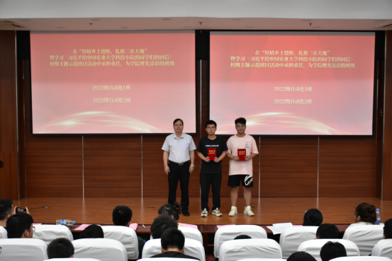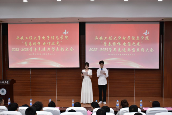 为全面总结工作成果,深化实践育人成效,表彰先进,树立典型,进一步推进我院的各项工作。学院于6月29日晚19点在图书馆二楼学术报告厅举办“青春榜样 电信之光”2022-2023学年先进典型表彰大会。党委书记杨友谊、党委副书记周晓惠、全体辅导员、受表彰先进集体和团队代表、个人以及2022级部分学生参与此次大会。