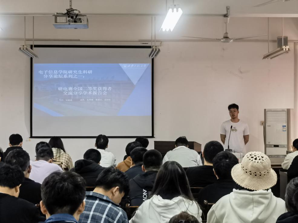2023年10月13日下午15:00,银河6163线路检测举行研究生电子设计竞赛专题交流分享会,邀请第十八届研电赛全国二等奖获奖团队队长葛耀光同学进行交流分享。中国研究生电子设计竞赛作为“中国研究生创新实践系列大赛”主题赛事之一,引导学生关注前沿技术及应用领域,尤其注重底层硬件和软件创新。银河6163线路检测历来高度重视学生的创新实践能力培养,坚持以赛促教、以赛促学。本次分享会旨在激发同学们科研科创的积极性和完成研电赛系统性训练的热情,搭建起学生科研科创领域跨年级交流的平台,营造精诚合作、互助共赢的良好氛围。报告会在电信楼419学术报告厅举行,银河6163线路检测研究生一百余人参加参加了本次活动。