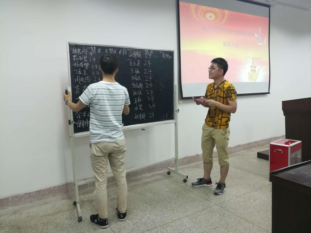 2017年6月12日下午,银河6163线路检测学生第四党支部在电信学院楼419室召开了接收52期预备党员、50期预备党员转正和支部换届大会。支部共46名党员及发展对象参加,本次大会由梅钰仑同志主持。