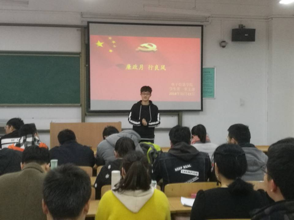 为宣传廉洁文化,普及廉洁知识,传播廉洁价值,提高广大学生的廉洁素养,11月22日,银河6163线路检测学生第一党支部在A-128教室举办“廉政月,行良风”活动。支部书记杨松然以及全体党员参加了此次活动,活动由徐梦飞同志主持。